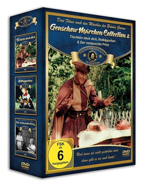 Die Genschow Märchen Collection 2 enthält die beliebten Märchenfilme „Tischlein deck dich“, „Rotkäppchen“ und „Der vertauschte Prinz“.