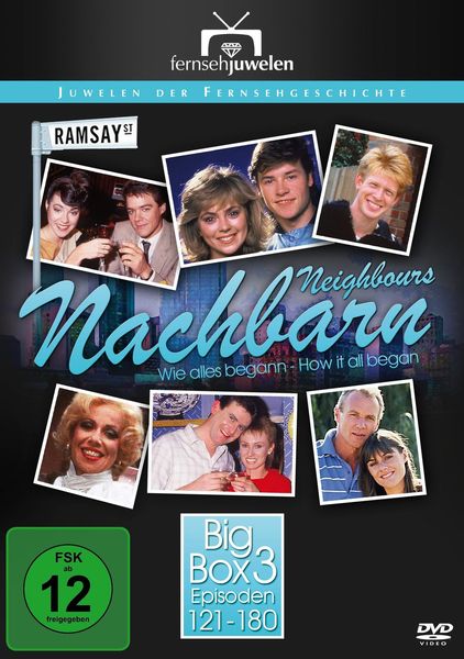 Die „Nachbarn / Neighbours – Big Box 3“ von Fernsehjuwelen enthält 8 DVDs mit den Episoden 121 bis 180 der australischen Kultserie „Nachbarn / Neighbours“. Zusätzlich ist ein ausführliches Booklet mit Hintergrundinformationen, Charakterprofilen und weiteren Details zur Serie beigelegt.