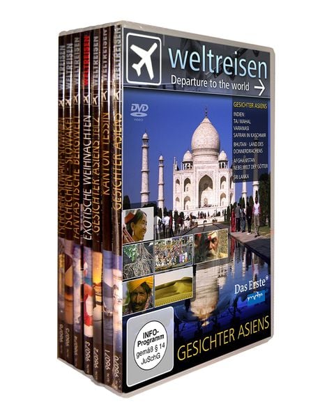 Das Weltreisen 7er Package [7 DVDs] ist eine Zusammenstellung von sieben DVDs, die jeweils verschiedene Regionen, Kulturen, Naturphänomene und Reiseziele auf der ganzen Welt dokumentieren. Es ist darauf ausgelegt, Ihnen ein breites Spektrum an globalen Einblicken zu bieten.