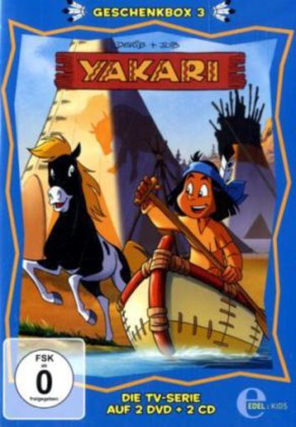Die Geschenkbox enthält zwei DVDs mit ausgewählten Episoden der beliebten Zeichentrickserie Yakari sowie zwei zusätzliche CDs, die das Hörerlebnis ergänzen.